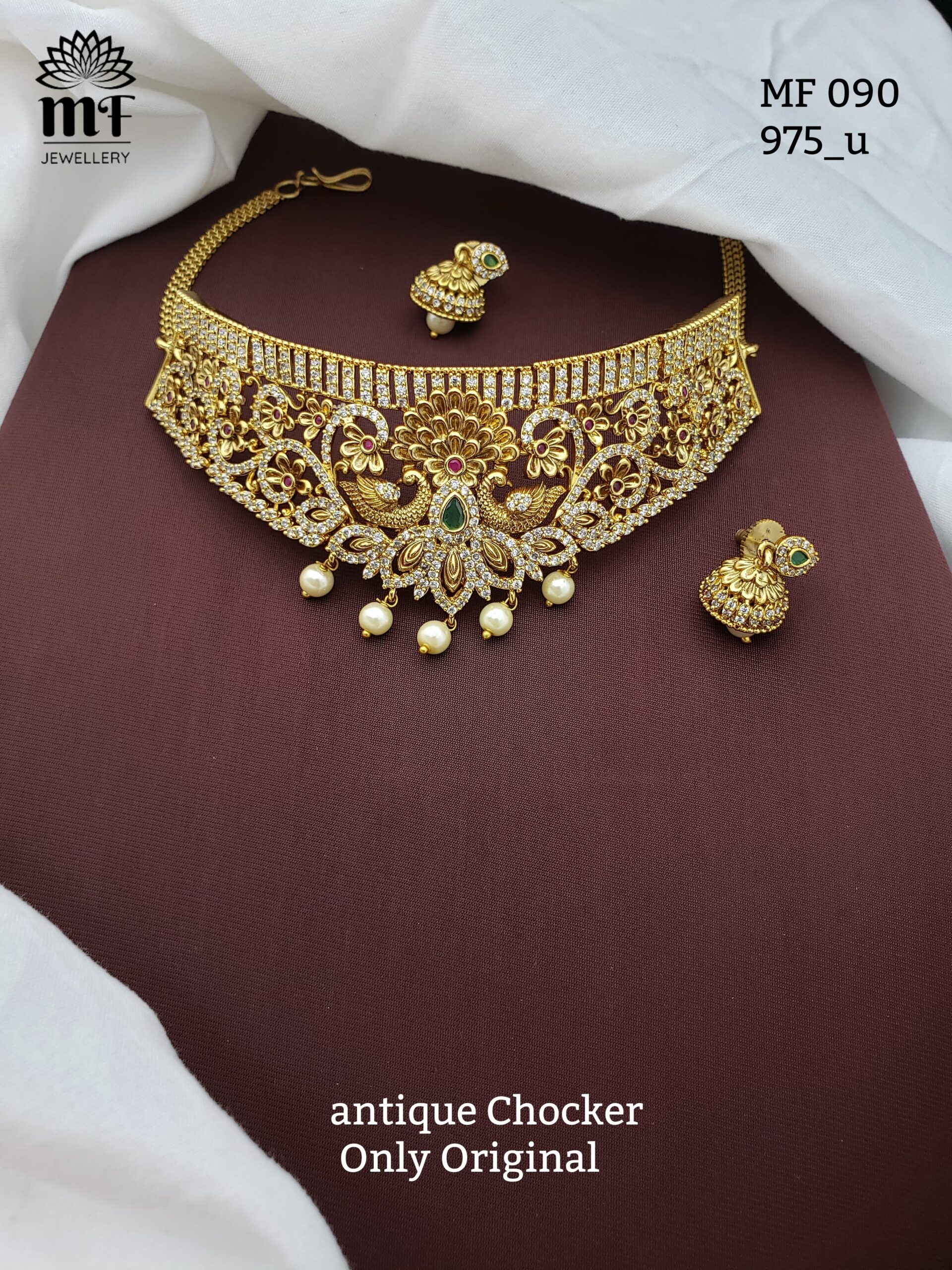 Peacock design in the center part of the choker is main highlight of this one gram gold antique choker.
