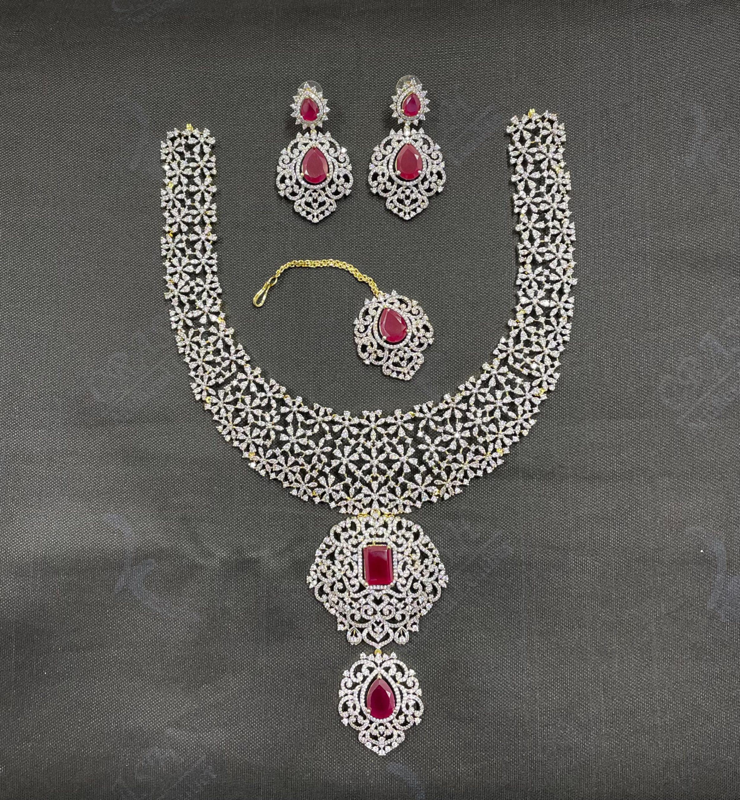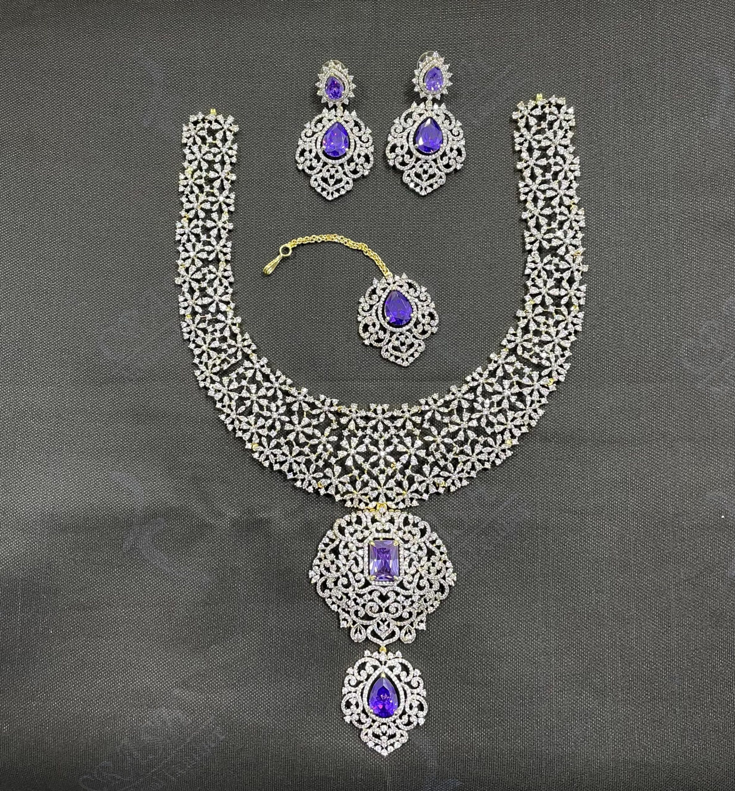 CZ Diamond Bridal Haram 1gm Jewellery is the perfect piece for anyone to wear or gift. CZ Long Haram fashion jewellery is individually wrapped and securely shipped. CZ Diamond jewelry cannot be exchanged, returned, or refunded.