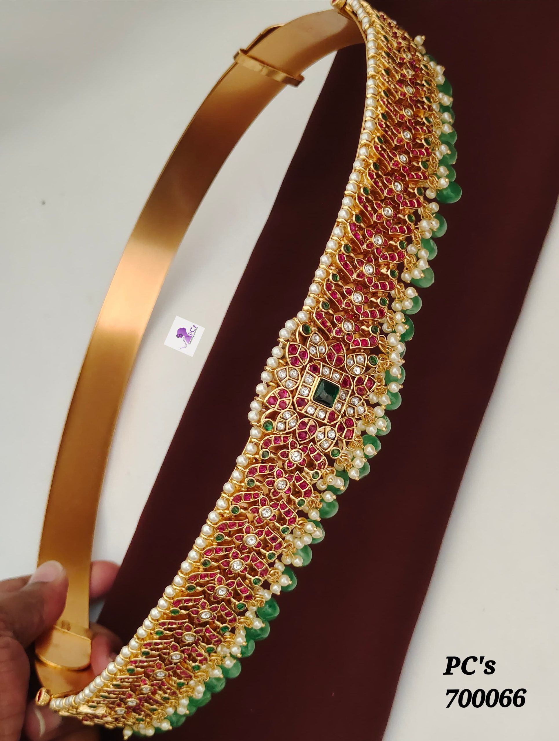Artificial kundan stones, beads and pearls are studded to give a rich finishing.