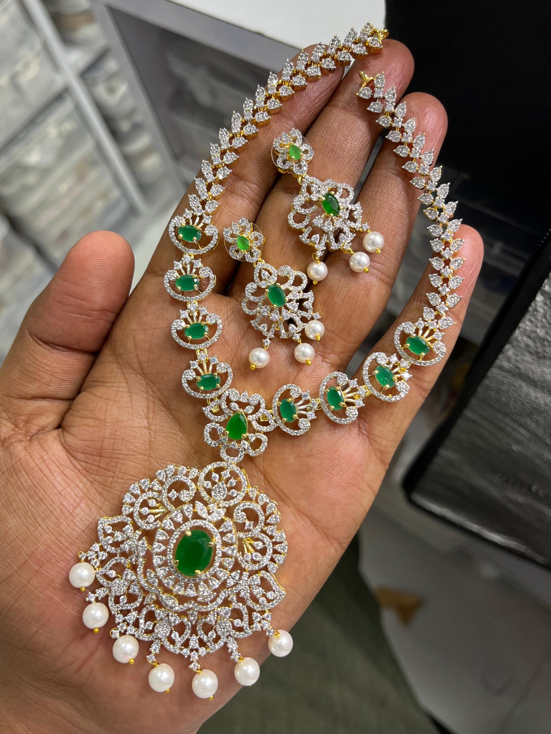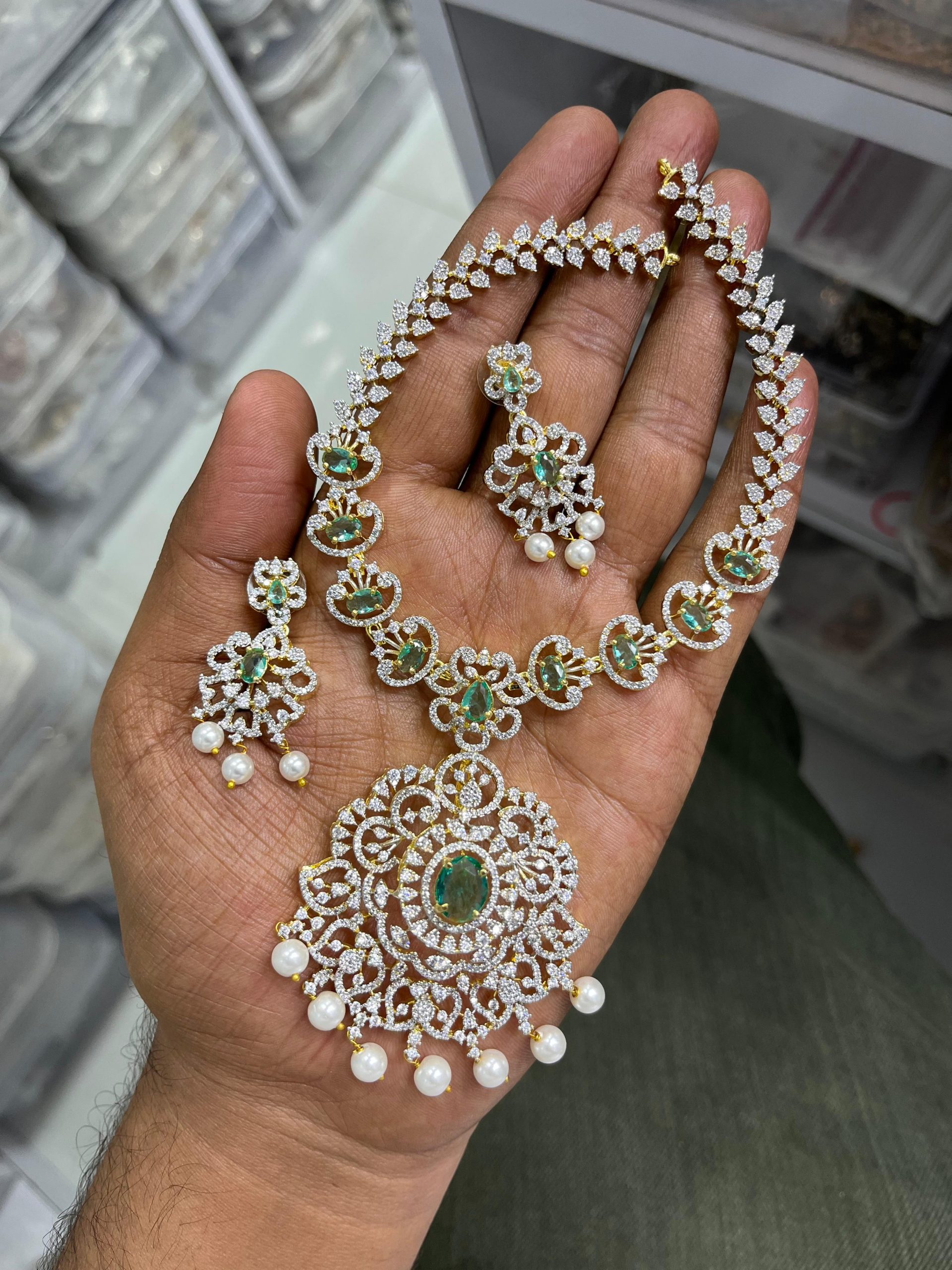 Bridal Jewellery Set In Green Stone