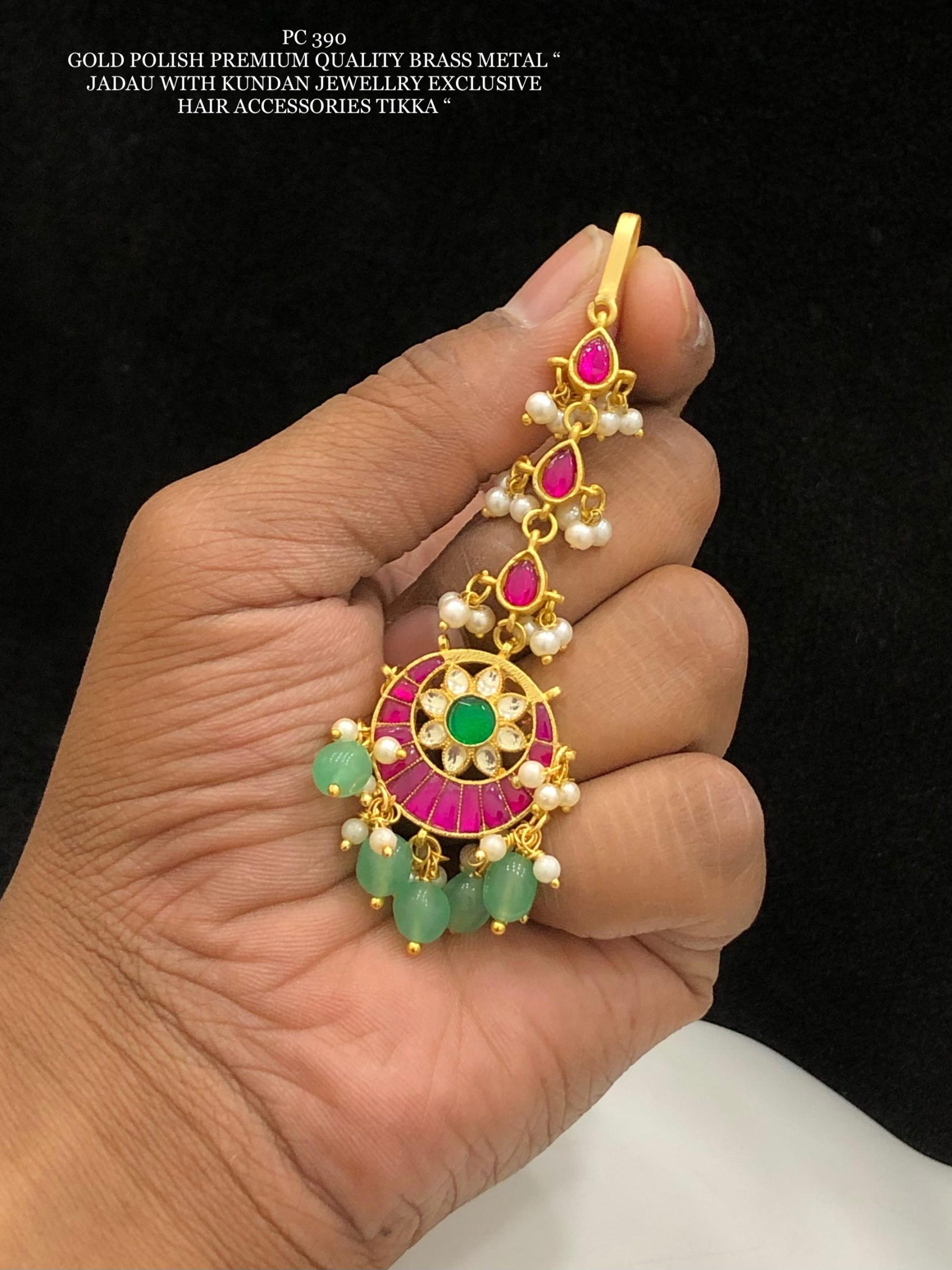 Maang Tika 1gm Jewellery is the perfect piece for anyone to wear or gift. Maang Tika fashion jewelry is individually wrapped and securely shipped. Maang Tika 1gm gold jewellery cannot be exchanged, returned, or refunded.